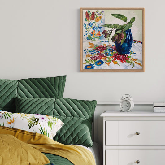 Sold outRed Gum Blossom on Blue and White