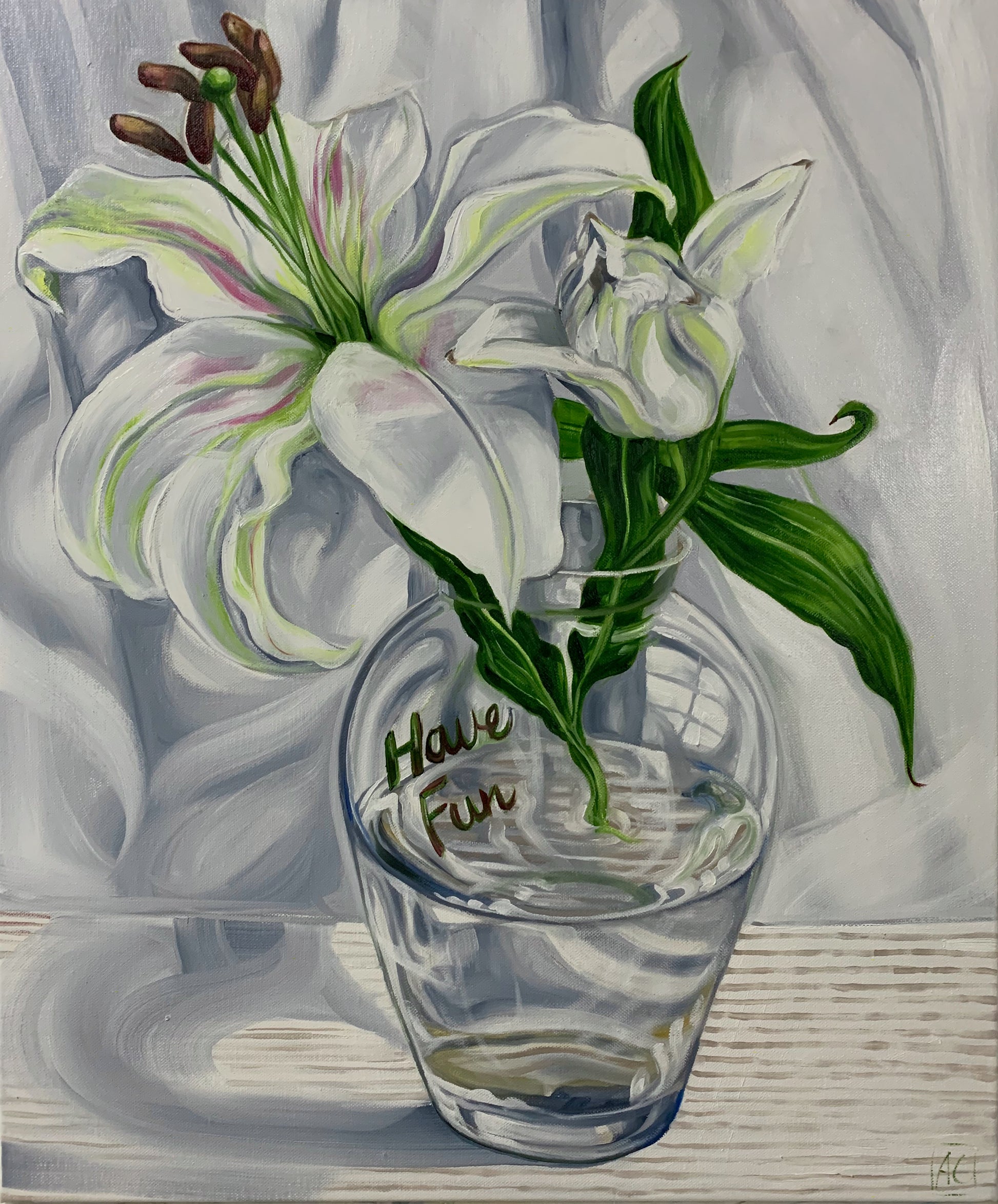 I have found that I particularly love painting reflections in glass and water so am following this line of interest for now.