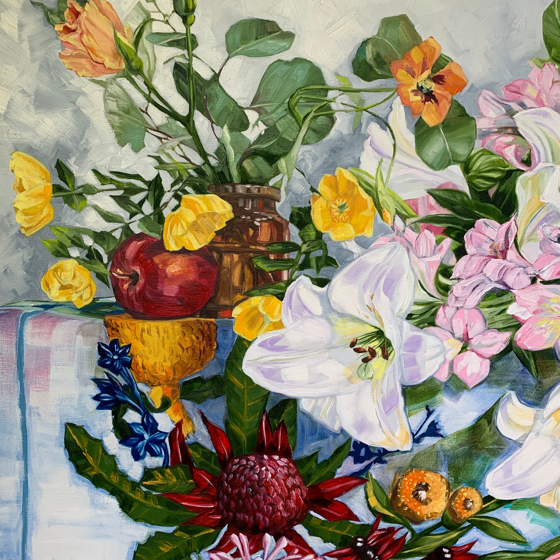 My Still Life paintings feature locally grown flora from around the Dandenong Ranges, Victoria, Australia where I live and work.