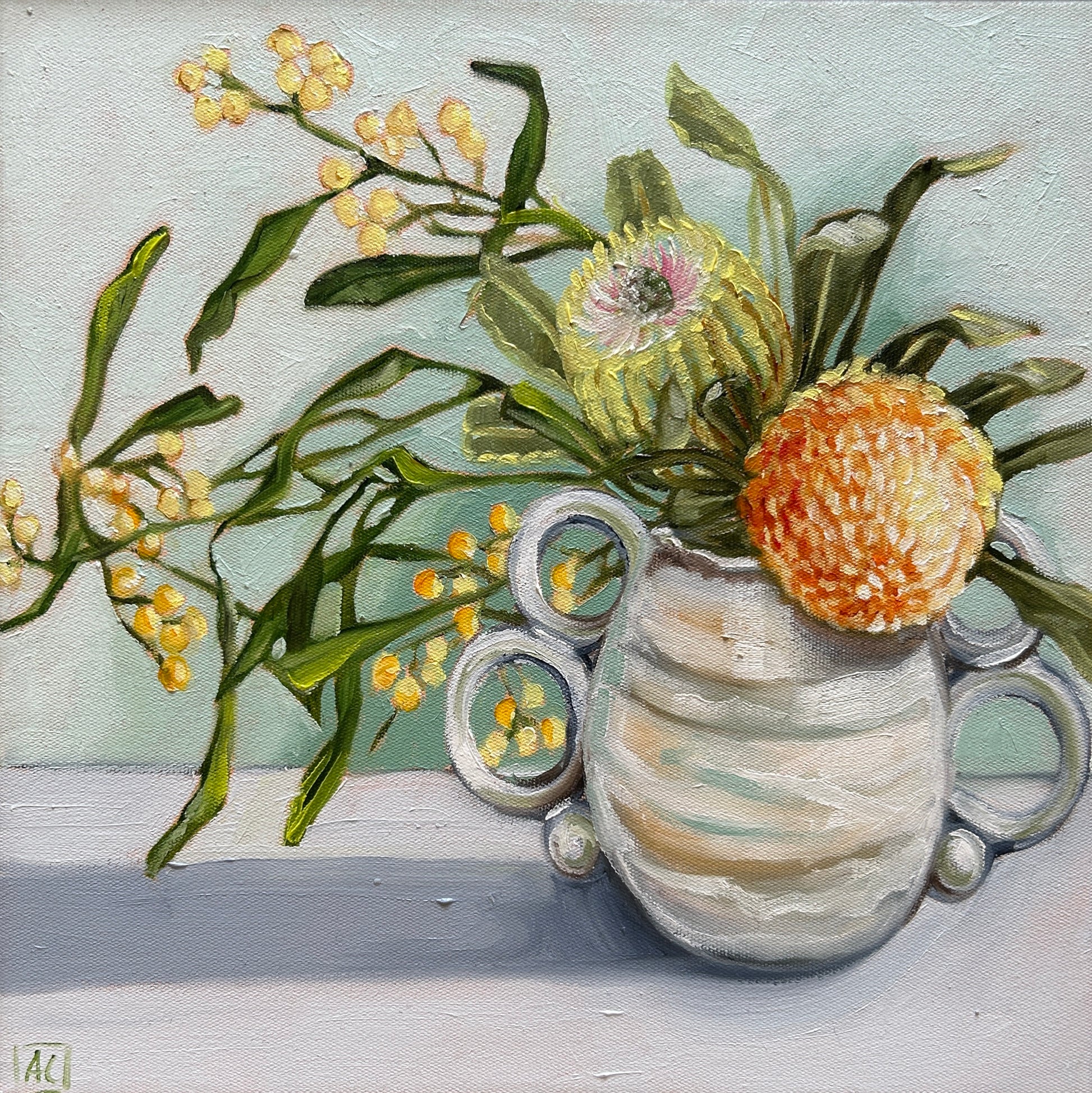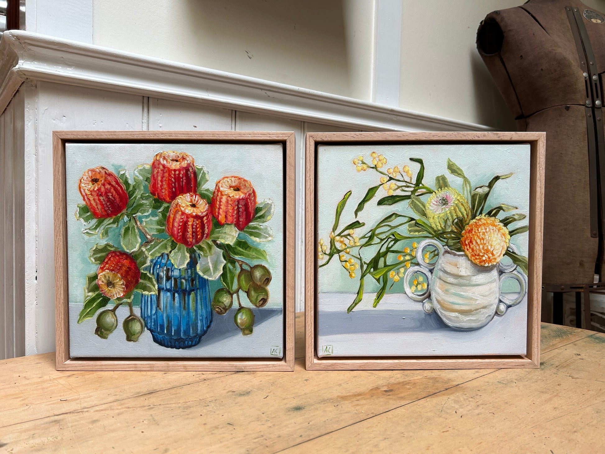 My Still Life paintings feature locally grown flora from around the Dandenong Ranges, Victoria, Australia where I live and work.