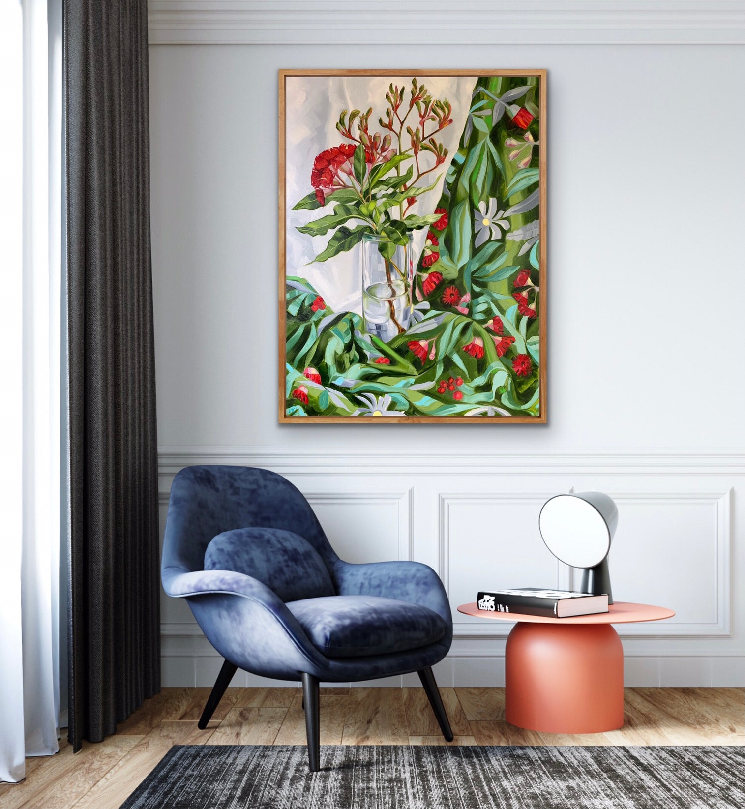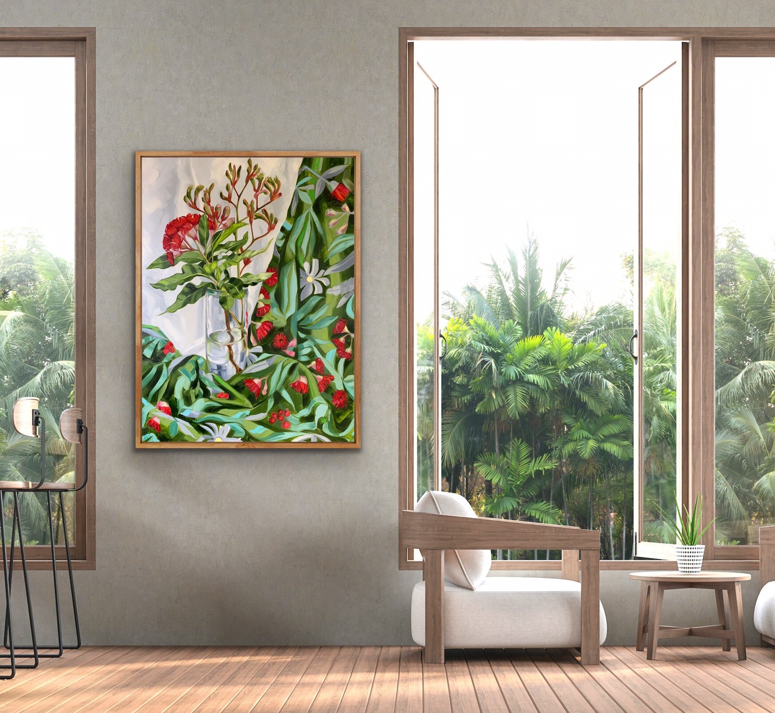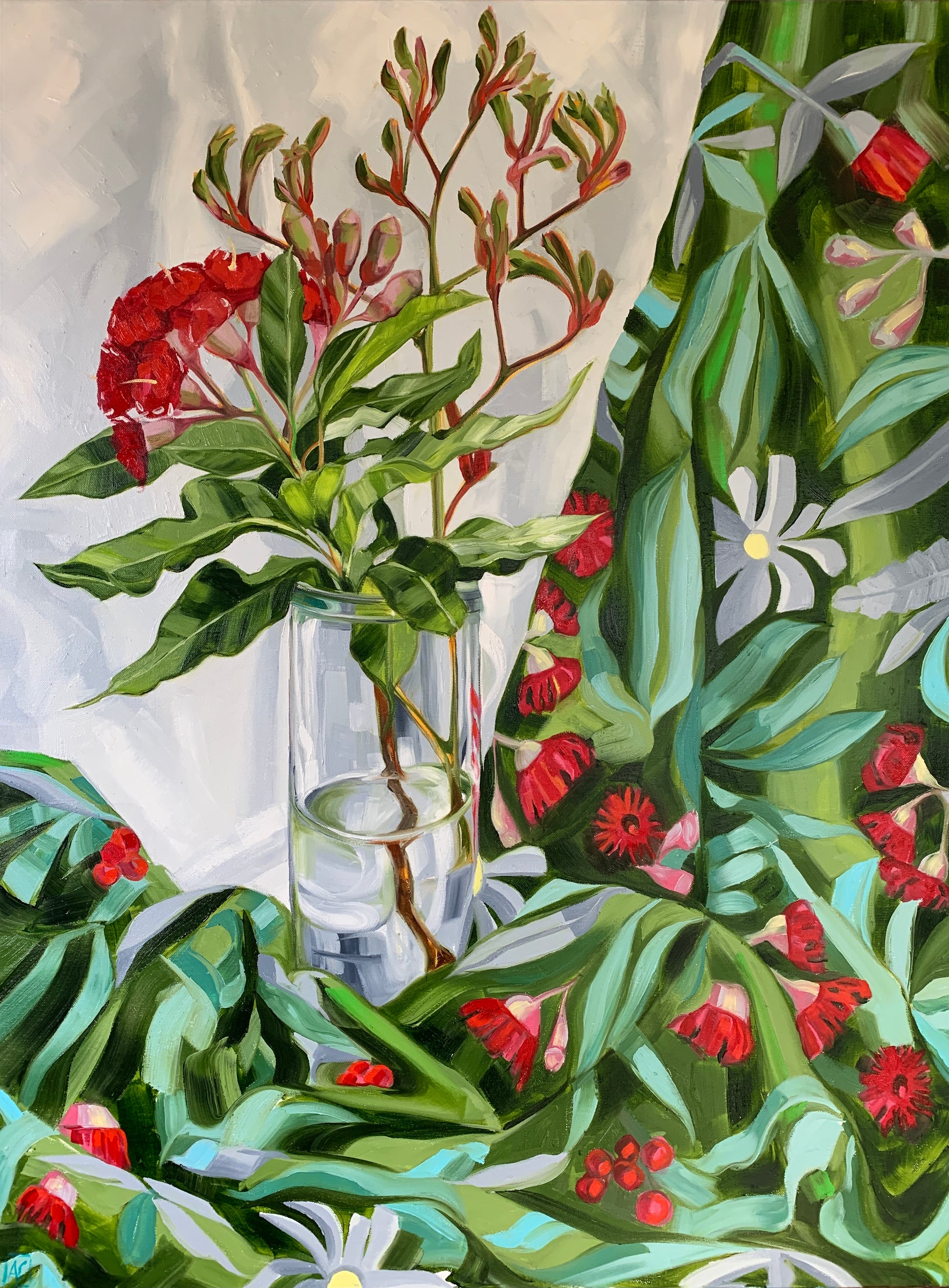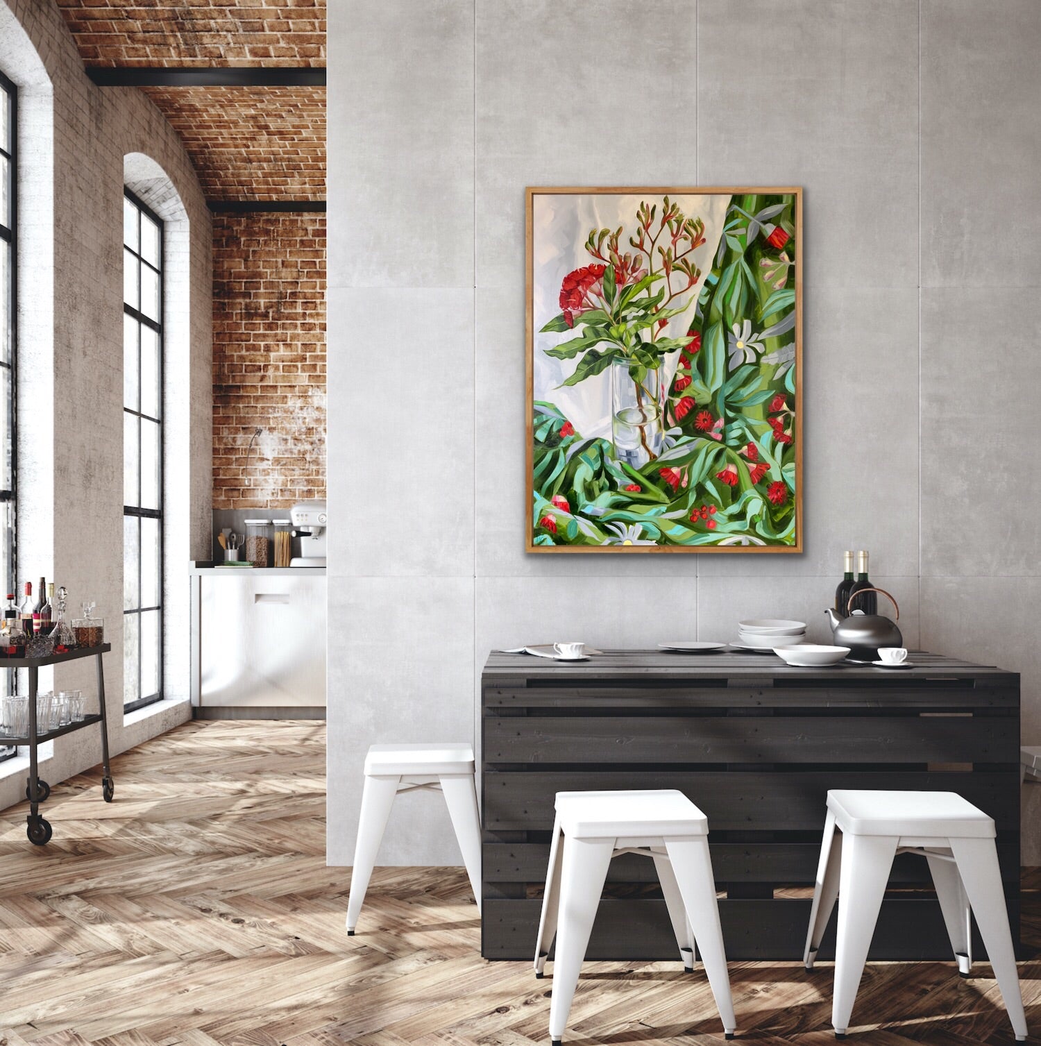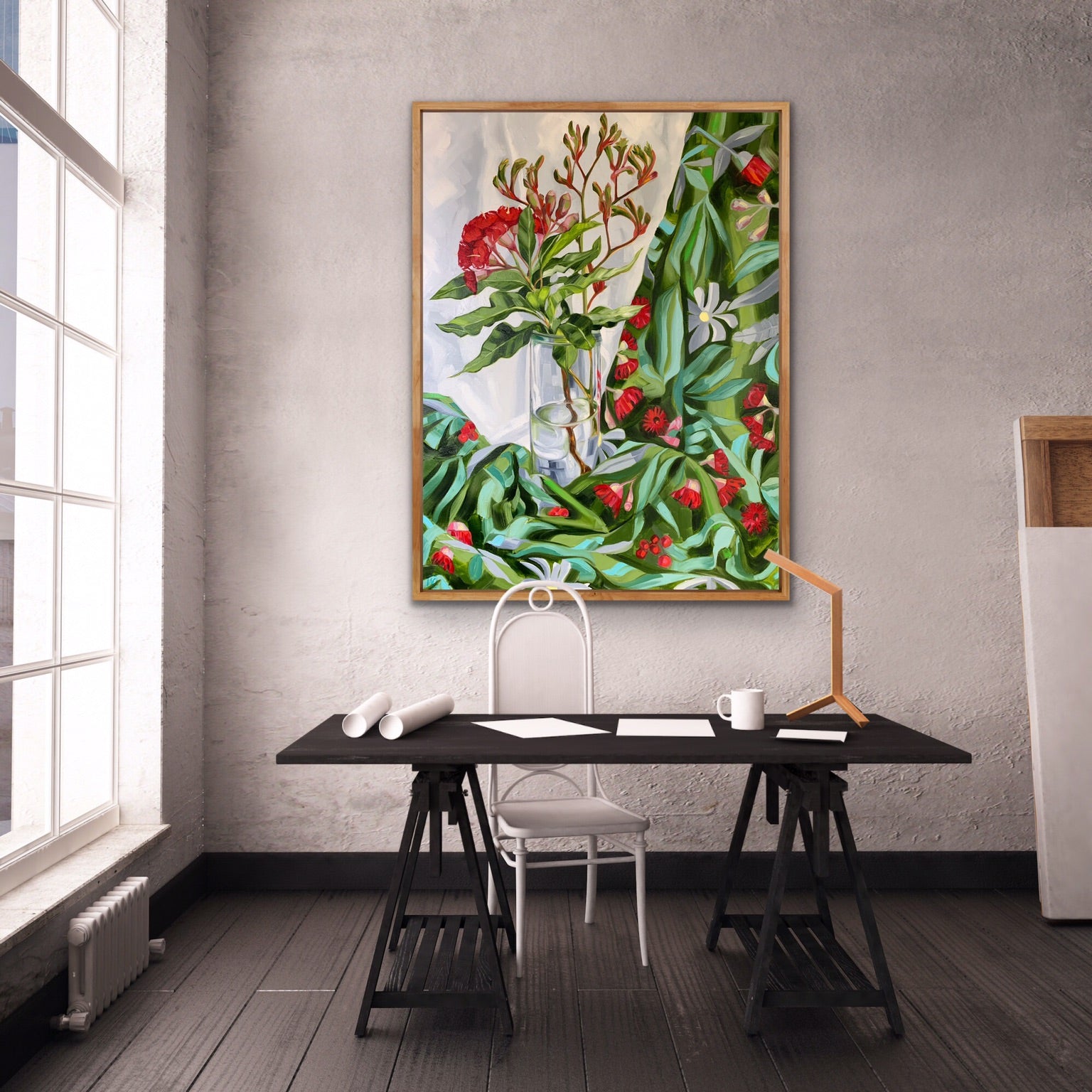 Beautiful bright Red Gum blossom from the seaside in Flinders Victoria with locally grown red and green Kangaroo Paw.