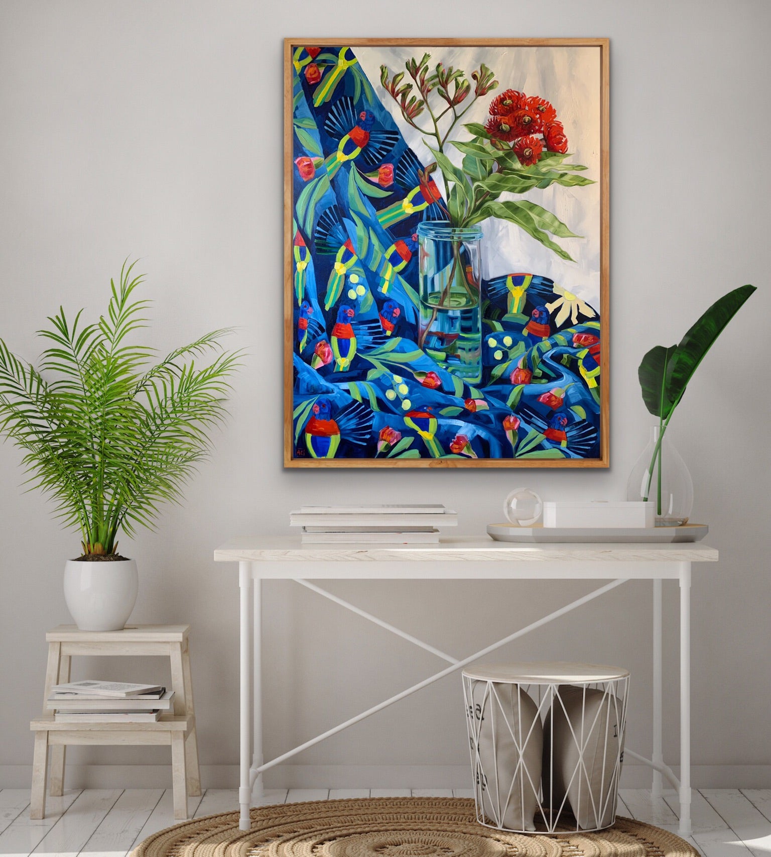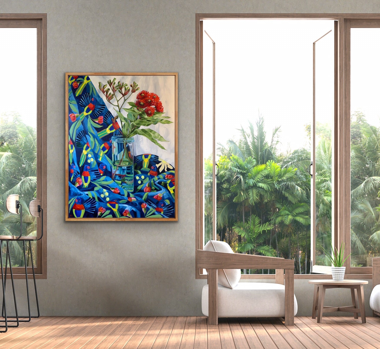 Beautiful bright Red Gum blossom from the seaside in Flinders Victoria with locally grown red and green Kangaroo Paw.