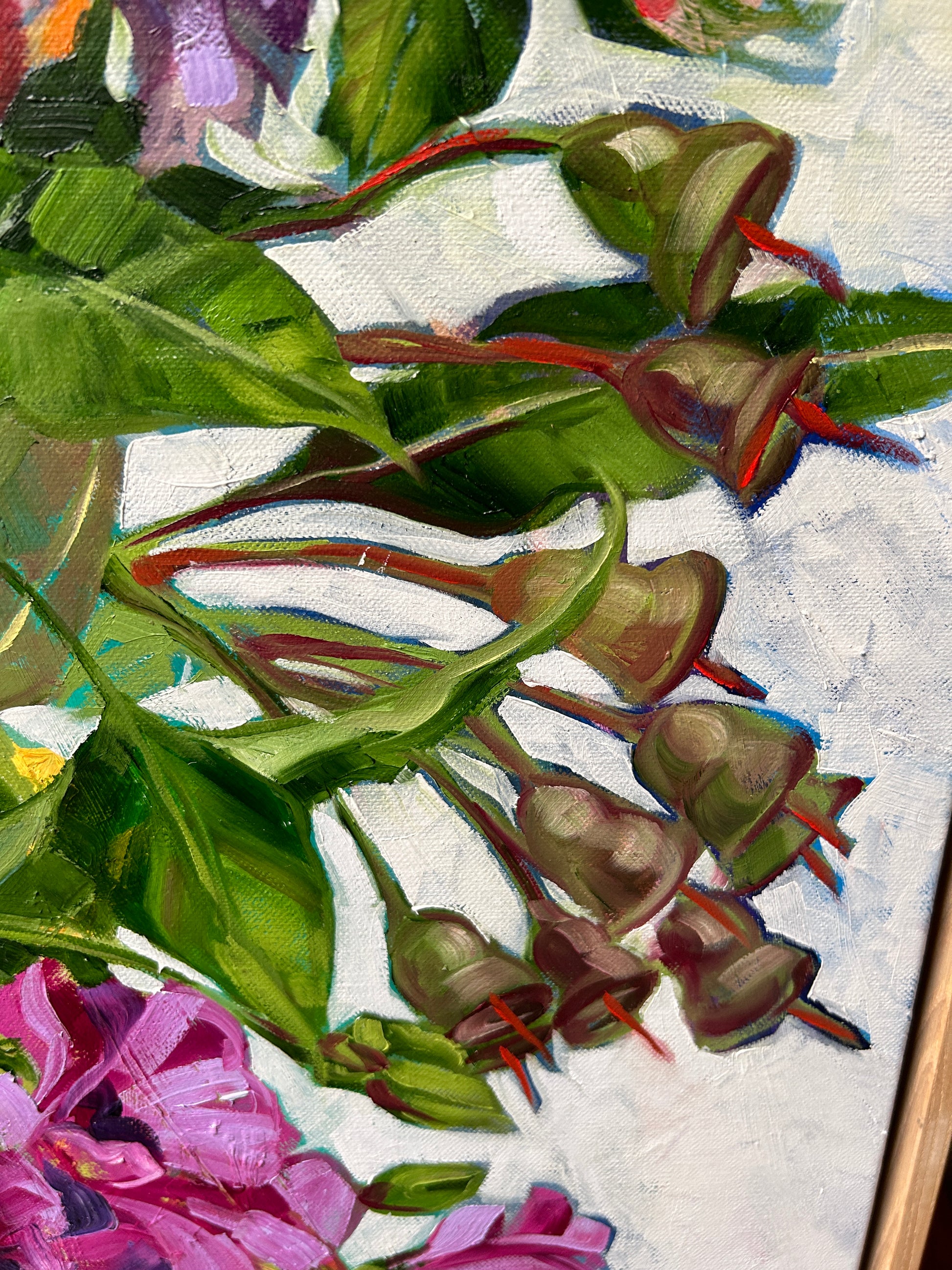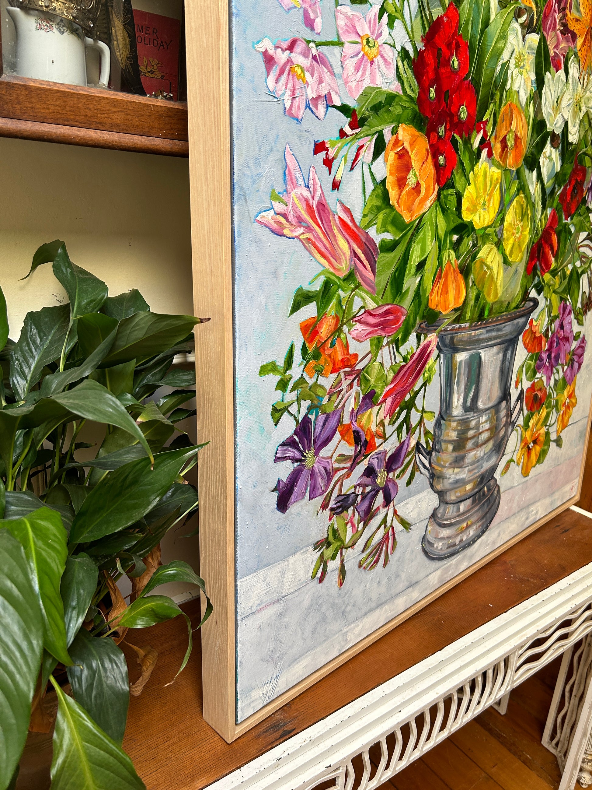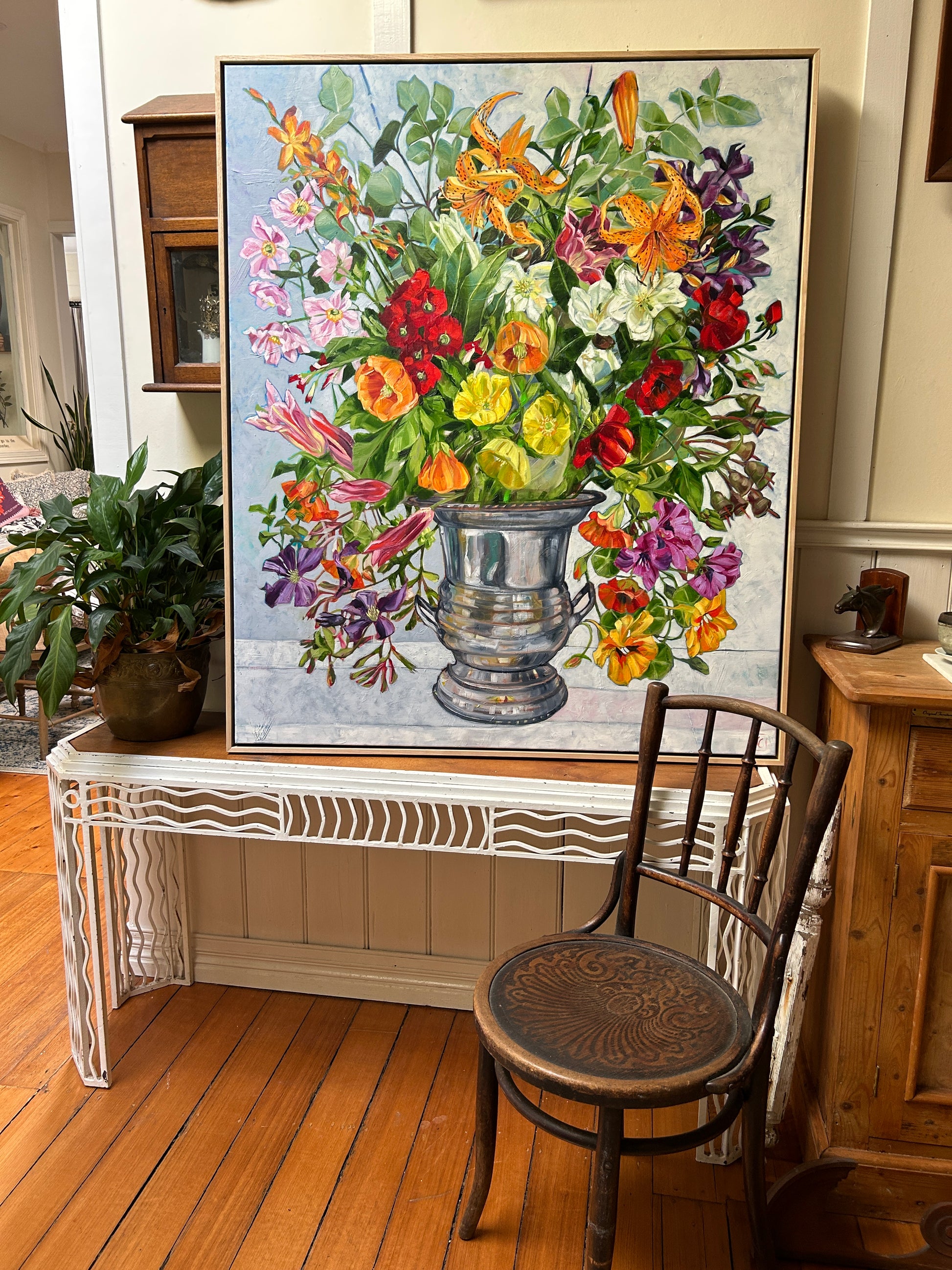 A LARGE framed painting from my body of work exploring our local flora and environs expressed through my vintage collections from my many years as a Vintage Merchant.